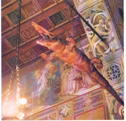 Nella chiesa di S.Maria Annunziata di Ponte Nossa, sempre dalle parti di Bergamo, è invece custodito il corpo imbalsamato di un coccodrillo lungo tre metri, ammazzato nelle acque del Serio attorno al 1500. In S.Maria del Monte (Varese) si può invece vedere solo la pelle di un altro coccodrillo, ucciso circa duecento anni più tardi, nel 1700.