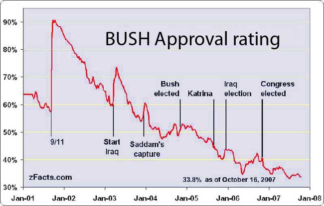 Andamento dei consensi di Bush, 2001-2008.