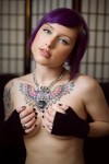 Sicché io ai capelli blu di Arcangelo replico coi capelli viola di questa mia gallery. Sarebbe interessante verificare quali scelte psicologico-emotive ci sono dietro la scelta di un colore piuttosto che di un altro, ma non saprei da dove iniziare.