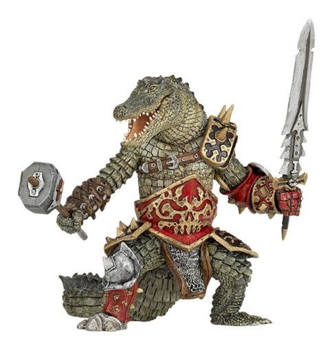 * Poco dopo aver programmato questo post, mi è arrivata una seconda miniatura, ossia quella del magnifico uomo-coccodrillo che vedete qui sopra. Non è prodotto da Safari Ltd, bensì da una delle sue due principali concorrenti, la Papo Toys (altrettanto buona). E ora mi tocca testare la terza contendente, la Schleich. Sarà una lunga discesa nell’abisso della dipendenza.