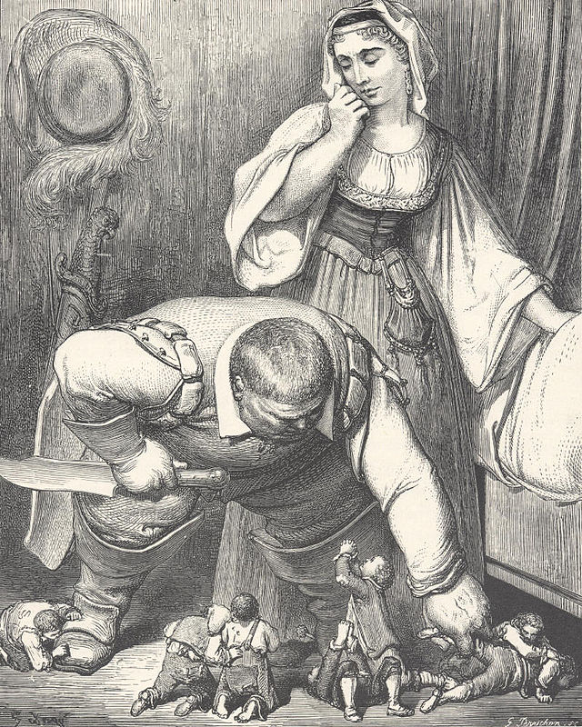 Inquietante perché: Uxoricida violento e possessivo, Barbablù è un uomo scostante, pericoloso e brutale. Come se non bastasse ha una spiccata passione per la necrofilia, che lo induce a conservare parte dei cadaveri delle sue ex mogli in una stanza segreta del suo maniero. Alcuni critici ritengono che questa figura sia ispirata a un personaggio realmente esistito, Gilles de Montmorency-Laval, barone di Rais, detto appunto “Barbablù”, un nobile francese che aveva combattuto al fianco della Pulzella d’Orleans, proprietario di immense tenute e castelli. Egli venne accusato e condannato per la tortura, lo stupro e l’uccisione di un gran numero di bambini, in occasione di vere e proprie cerimonie pantagrueliche di lusso e lussuria, culminanti col sacrificio di fanciulli adescati tra la povera gente, poi fatti scomparire.
